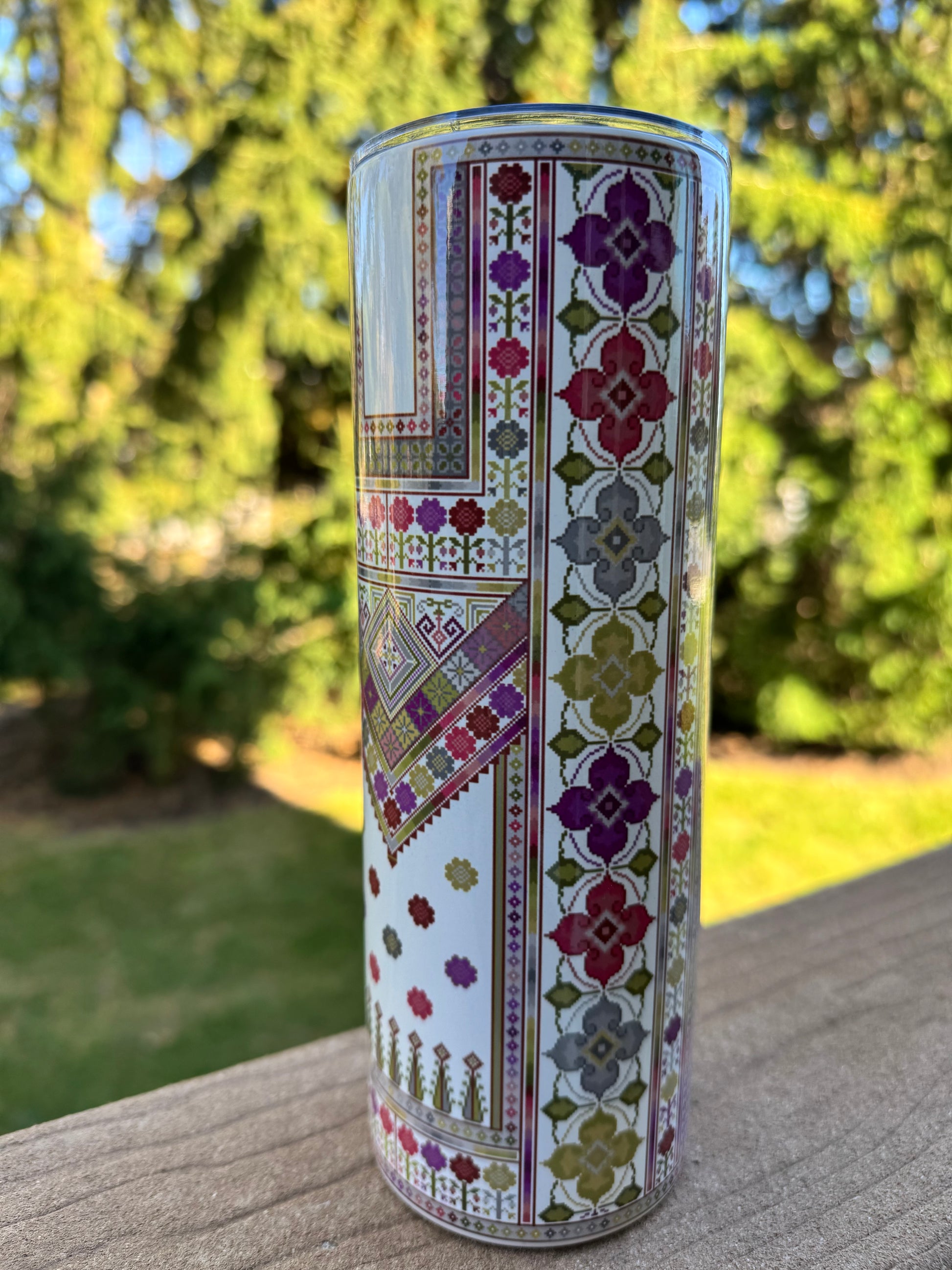 Sitti's Bloom of Palestine Tatreez Qabba Tumblers include a Straw, 20oz