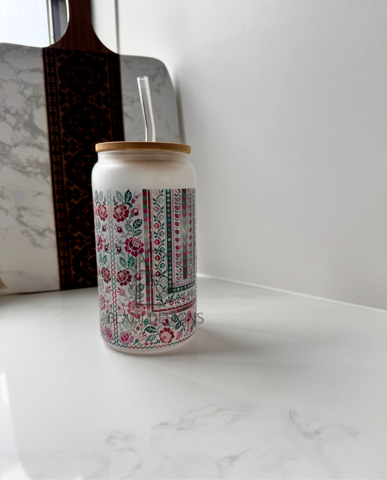 Sitti's Pink/Green Tatreez Iced Coffee Libby Cup